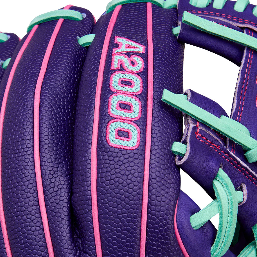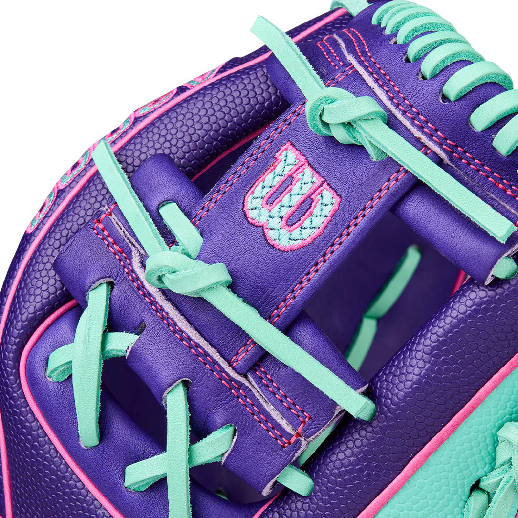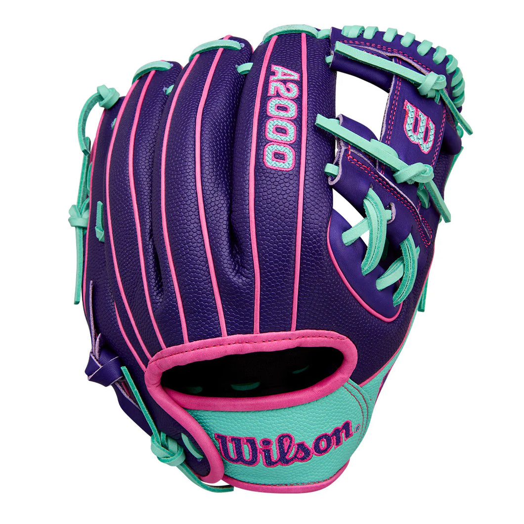 Make every play look routine. The Winter 2025 Wilson A2000® DP15SS brings Pedroia Fit™ Technology—shorter finger stalls and a narrower wrist opening—to an 11.5" infield pattern designed with longtime Boston infielder Dustin Pedroia. A lightweight SuperSkin™ back pairs with Pro Stock® Leather in the palm for quick, confident picks and transfers. The H-Web and shallow pocket speed up glove-to-hand action, while Comfort Pro™ Fit, Dri-Lex®, and Flat Finger Binding keep young infielders comfortable from first pitch to last out. Finished in a bold Purple / Seafoam / Flamingo Winter Collection look.